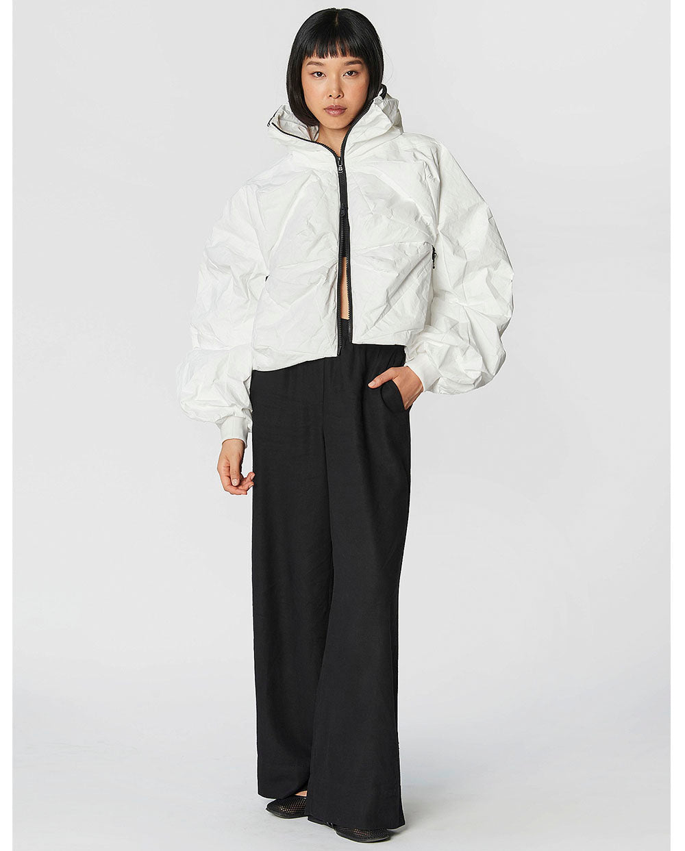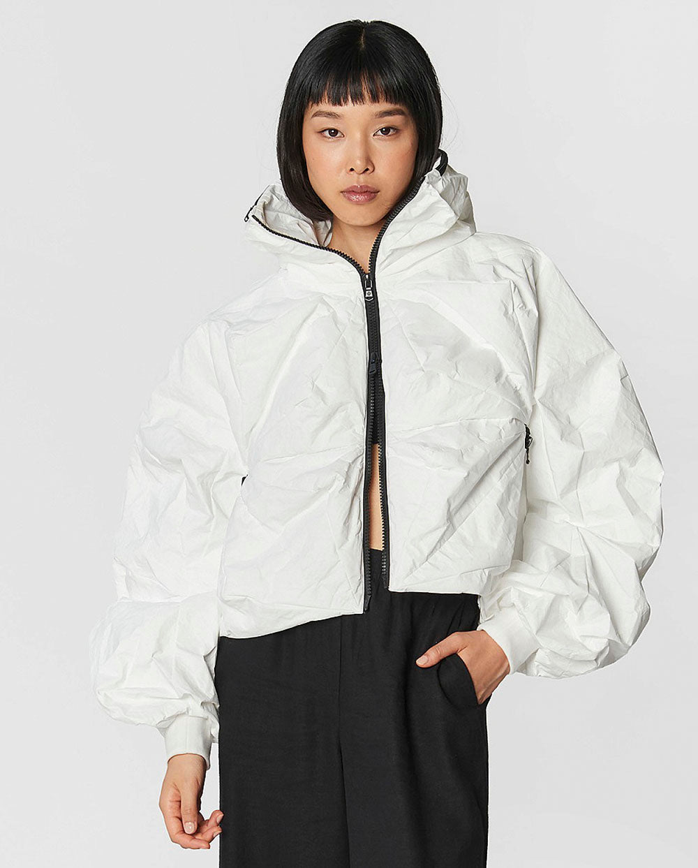Confeccionada con un innovador tejido texturizado, ofrece protección contra el viento y los cambios climáticos. Las líneas limpias y el volumen suave crean un look moderno y versátil, ideal tanto para la vida urbana como para el tiempo libre.