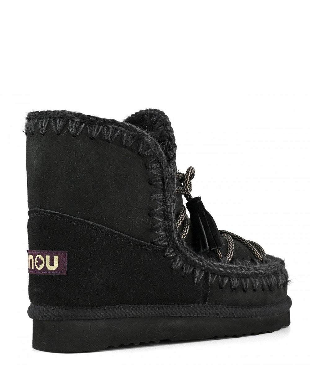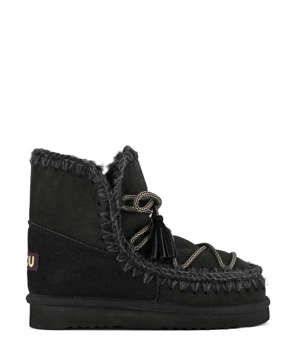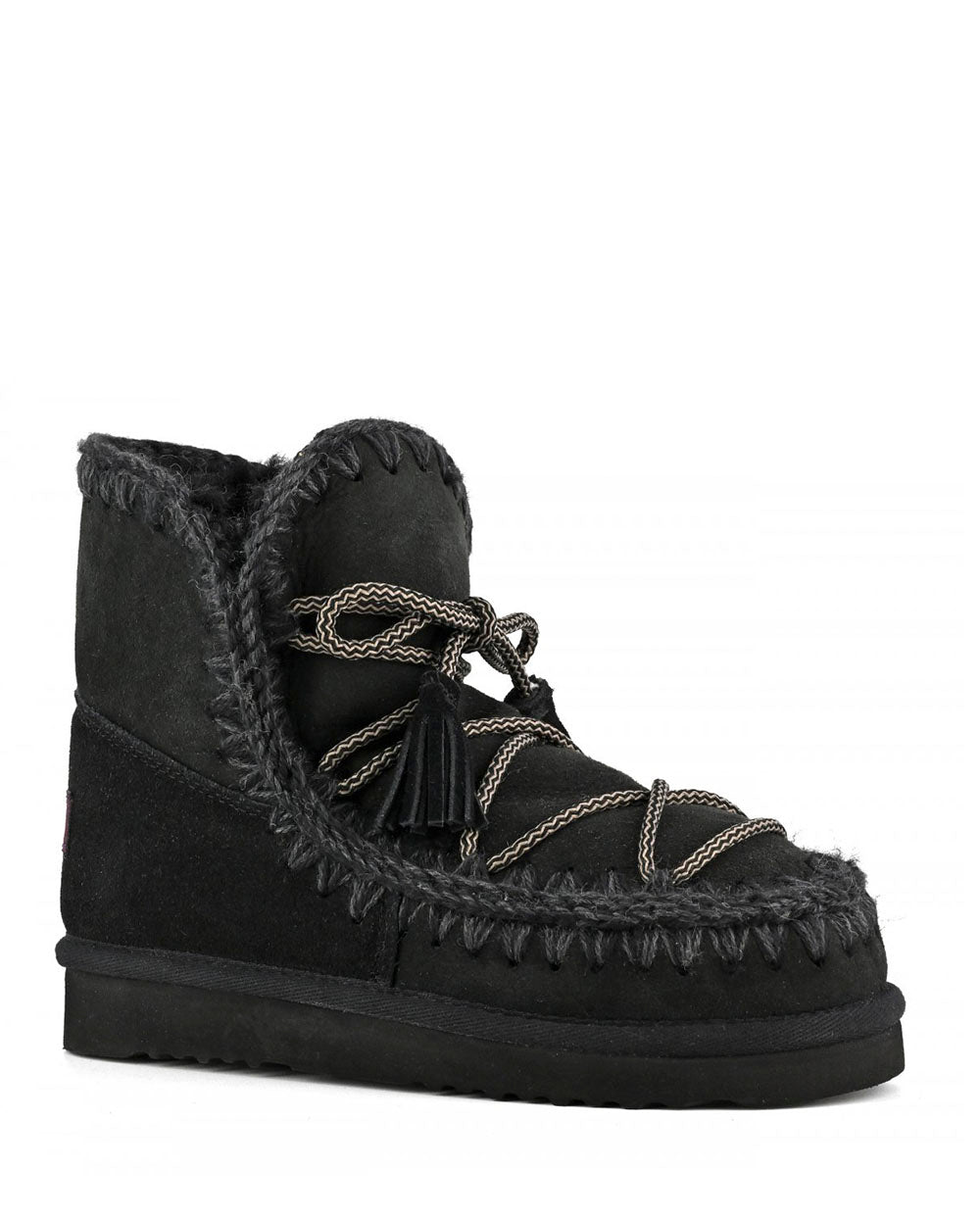 Novedad para la nueva temporada de Otoño Iniverno 2025-26., el icónico Botín Eskimo 18 de Mou, ahora con cordones frontales cruzados, rematados con borlones.