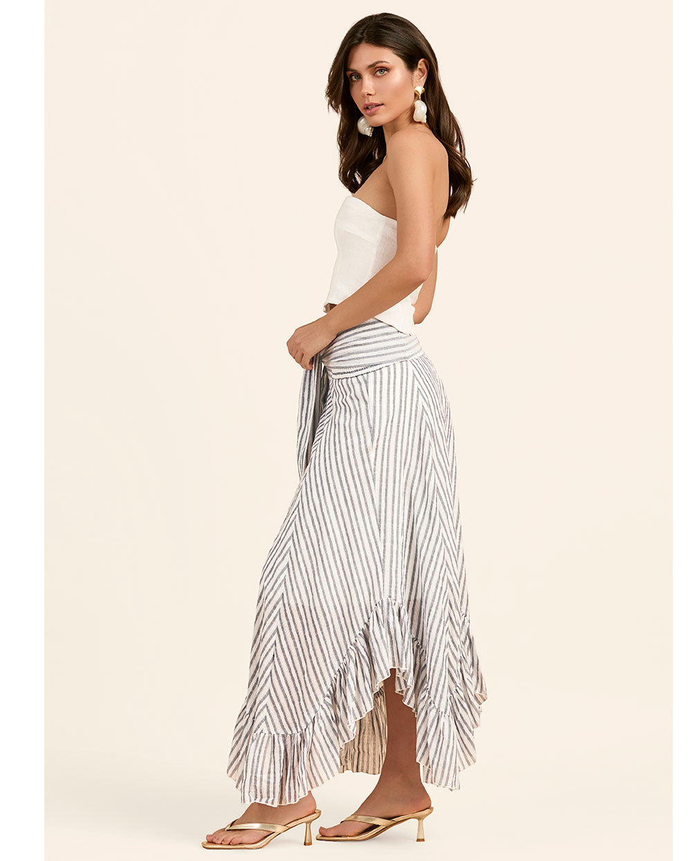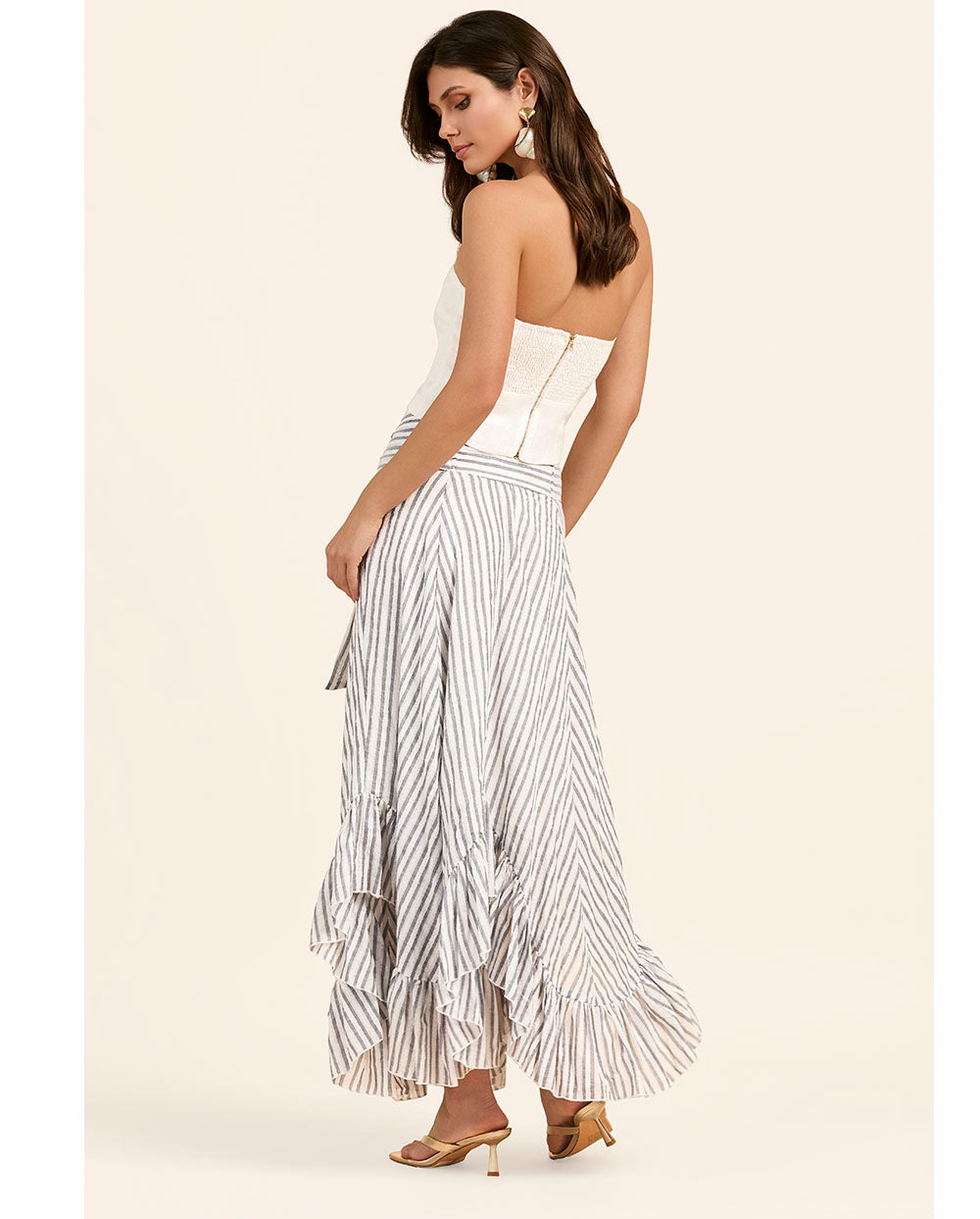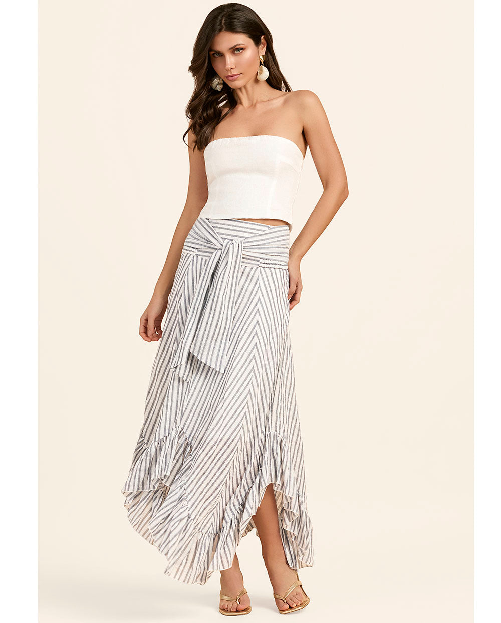 Falda Venecia de largo midi asimétrico en tejido de rayas, de la Nueva colección de Fetiche Suances Primavera-verano 2026