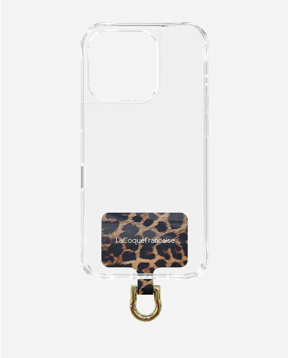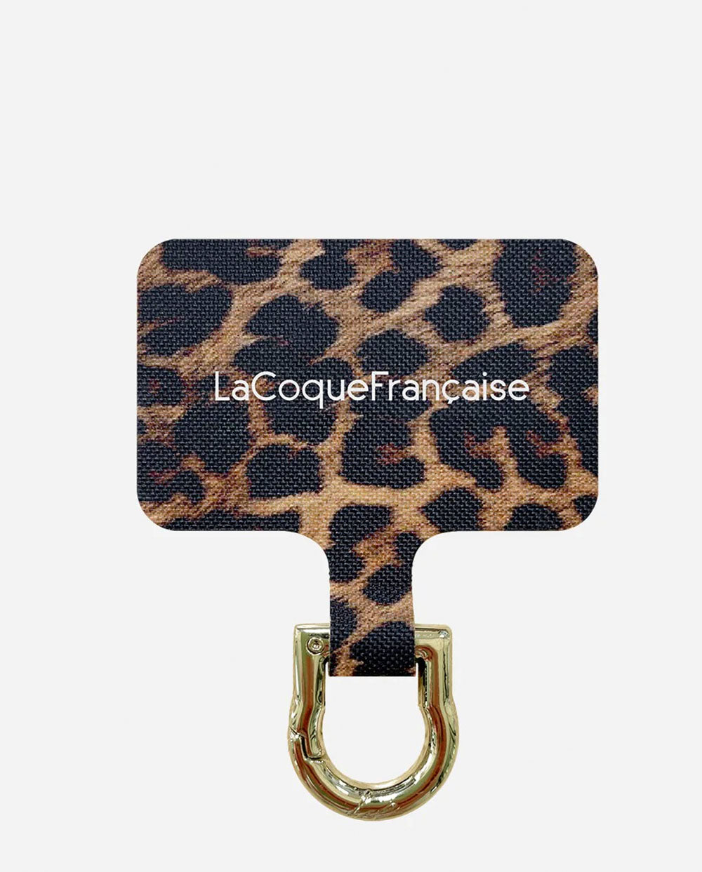 Adaptador universal en diseño animal print Leopardo en tonos terracota y negro, diseñado para conectar fácilmente la cadena a cualquier teléfono sin quitar la funda.