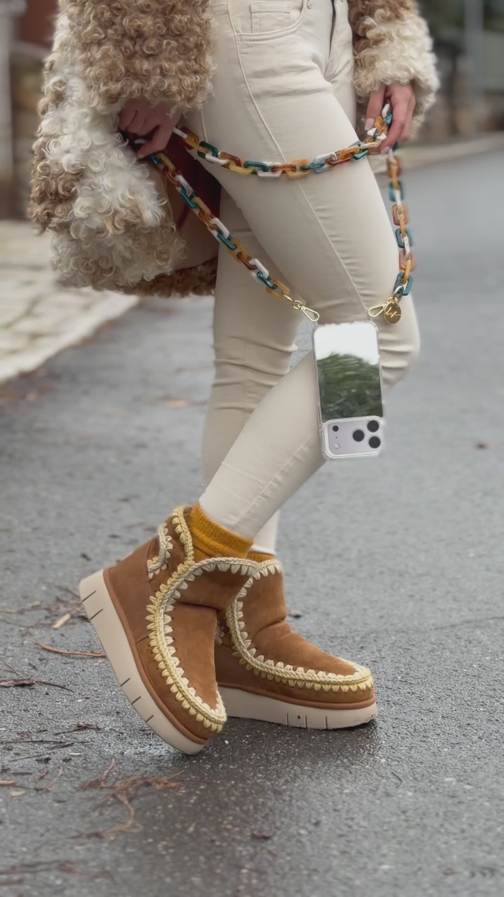 Un accesorio para llevar colgado tu teléfono movil con estilo. Son cadenas de calidad, duraderas y ligeras. Resultan perfectas para cruzar como bandolera gracias a su longitud de 120cm. Si se te queda corta puedes añadir los alargadores de la marca, que te servirán para este u otros usos (por ejemplo: para extender el largo de las correas de tus bolsos)