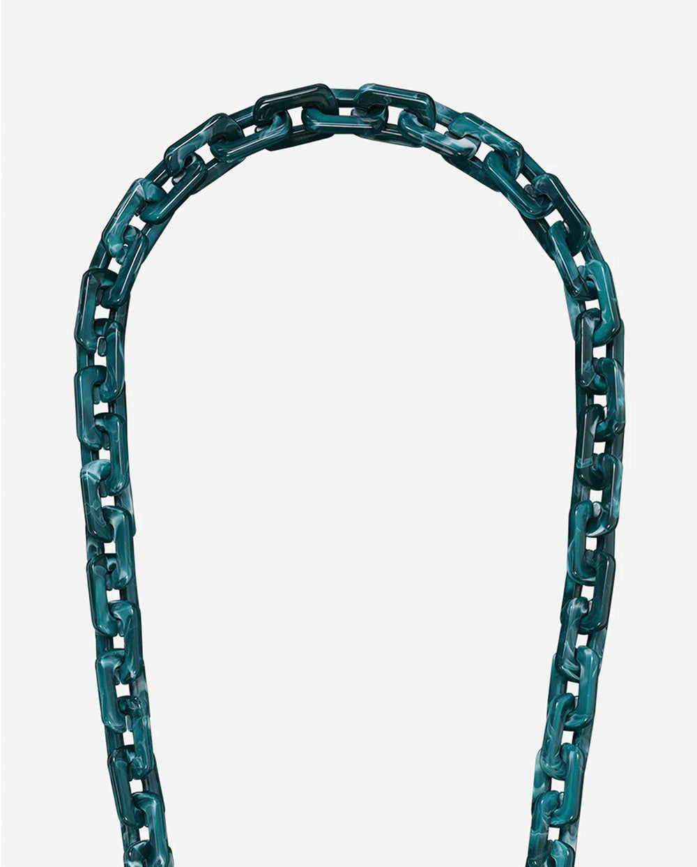 Cadena Emmy de 120 cm de largo, con estampado en resina de carey azul y mosquetones dorados y medallón LCF grabado decorativo. Se engancha a cualquier funda de doble aro o a otras fundas con el adaptador universal de mosquetones giratorios.