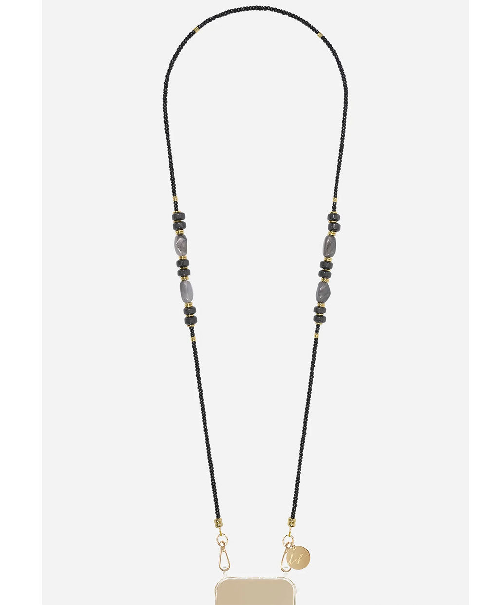 Cadena para teléfono Chiara negro pedrería LaCoqueFrançaise