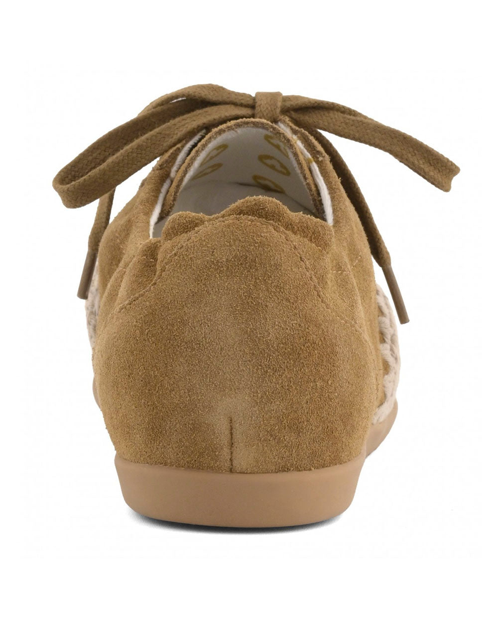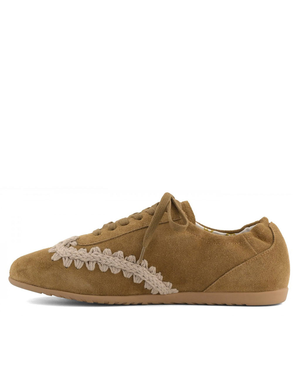 Las bailarinas con cordones son una incorporación muy chic. Con empeine de ante color marrón y la costura de ganchillo característica de la marca al contraste.
