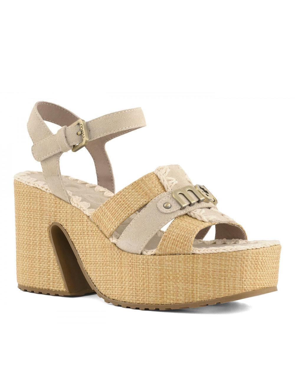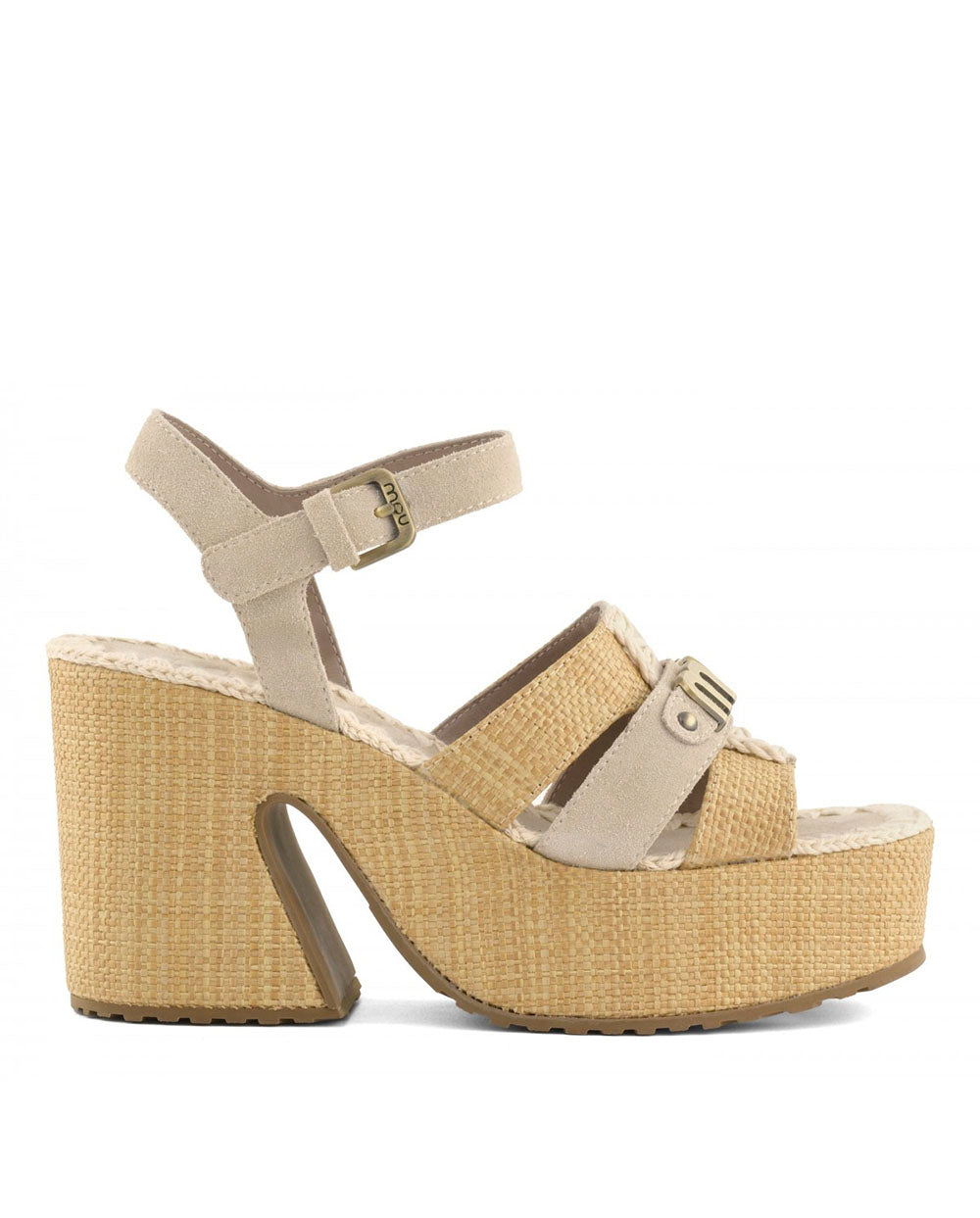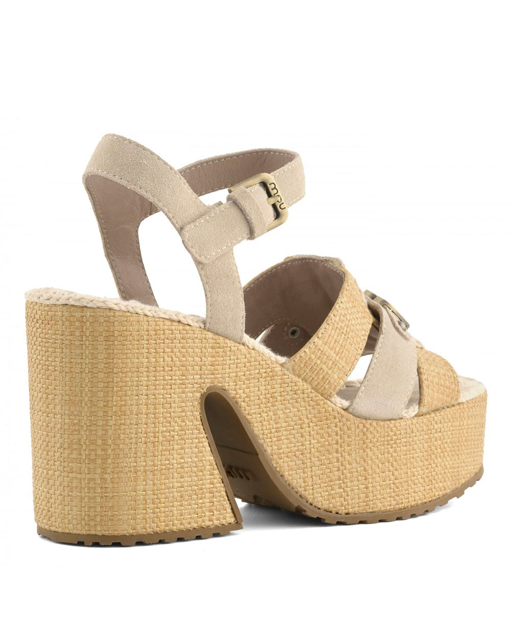 MOU sandalia plataforma rafia cinta tobillo chalk