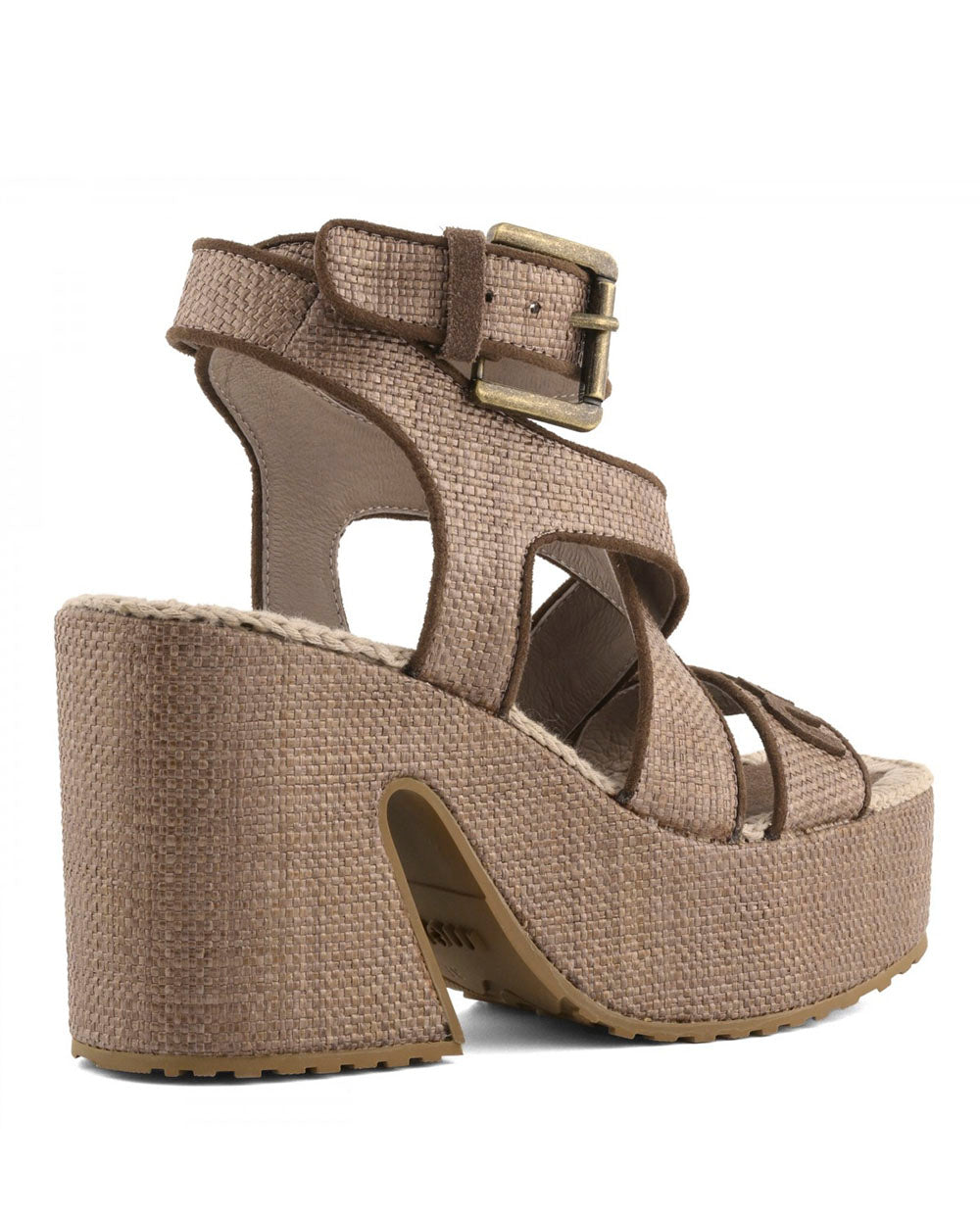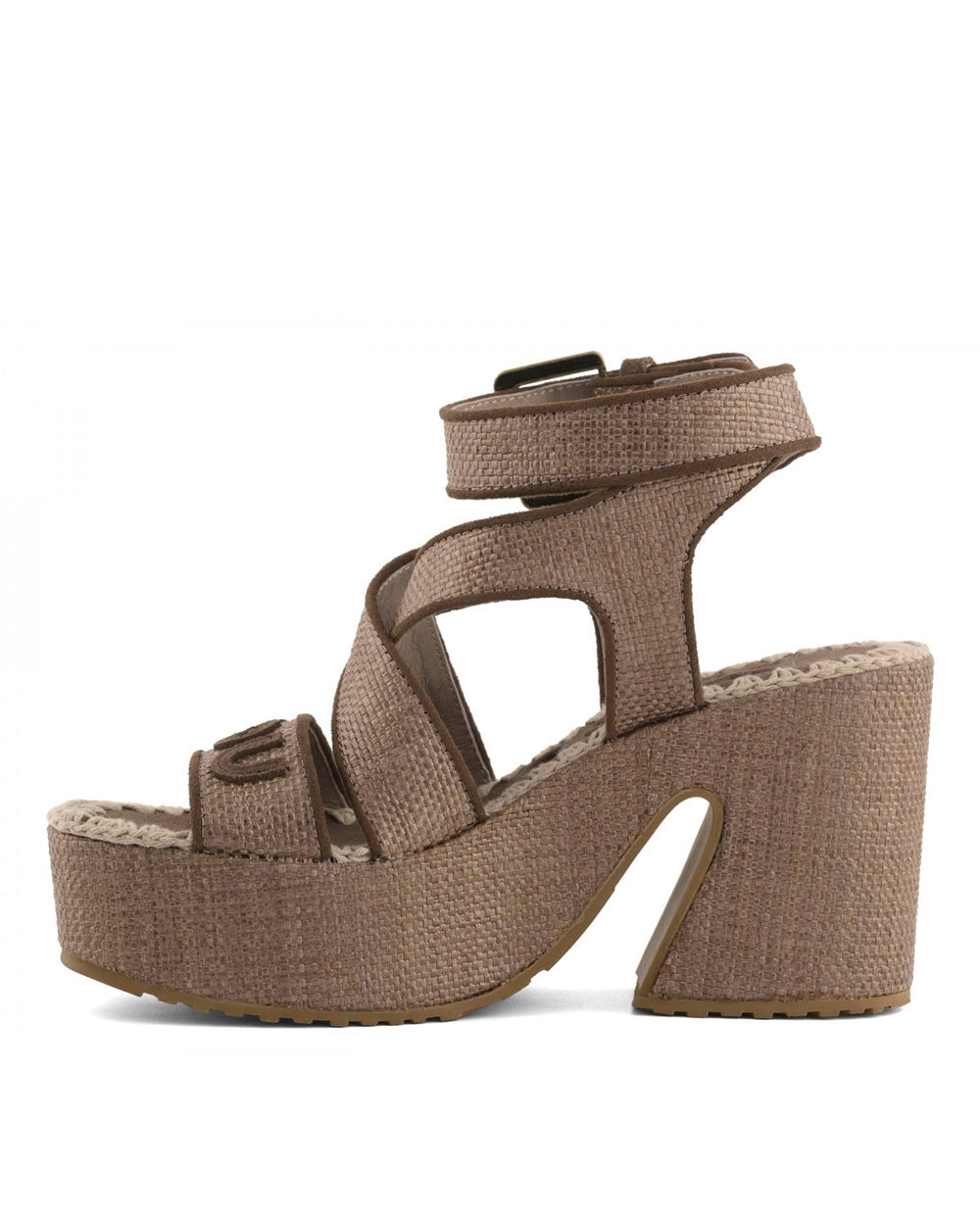 MOU sandalia plataforma rafia lace-up avellana