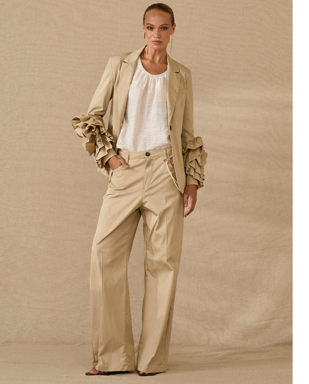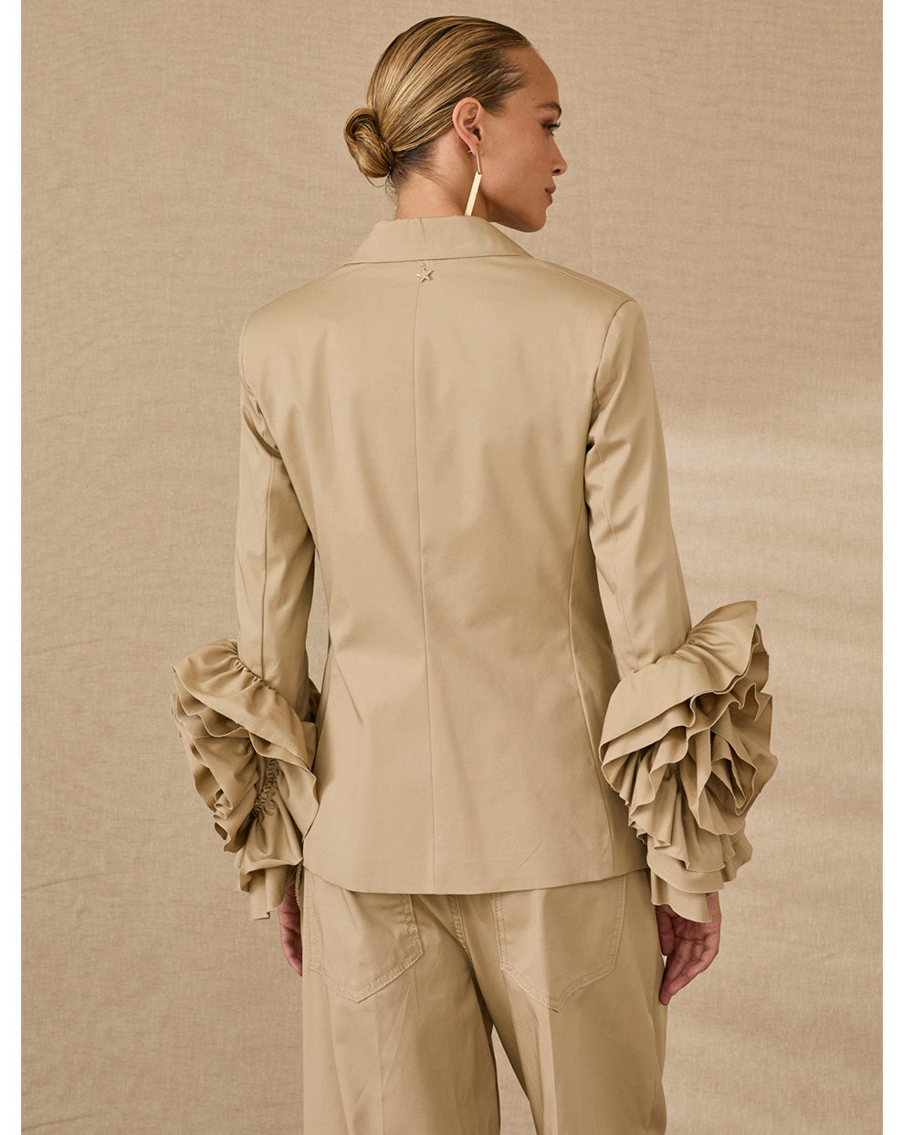 La Blazer Maxi Rose es una declaración de estilo. Una americnaa clásica en color arena que cobra vida con la gran aplicación de rosas en las mangas. Se cierra con botón bajo el pecho, entallada en cintura y con hombreras. Forro interior.