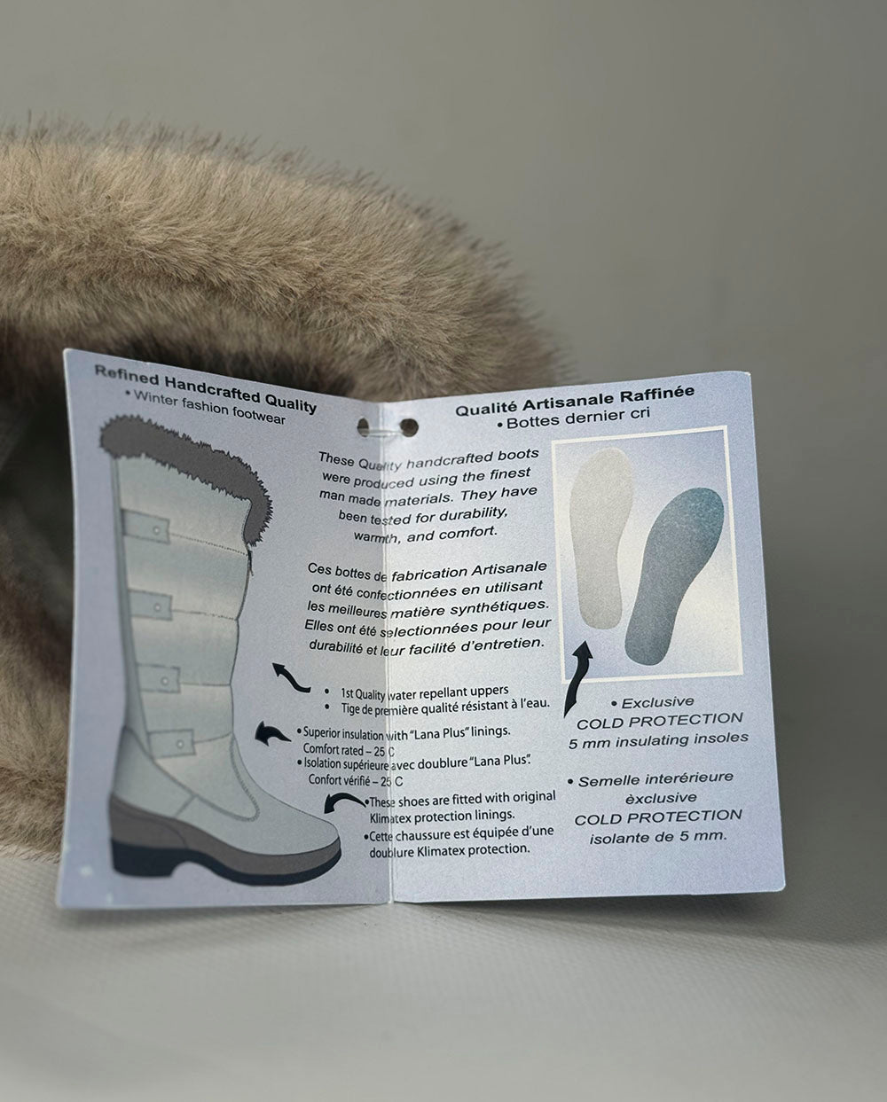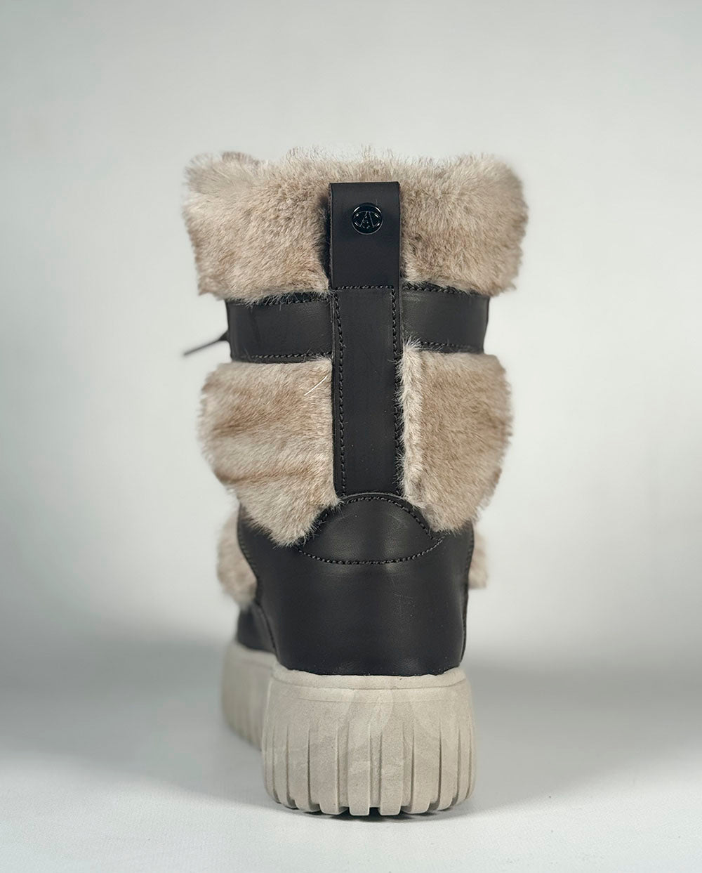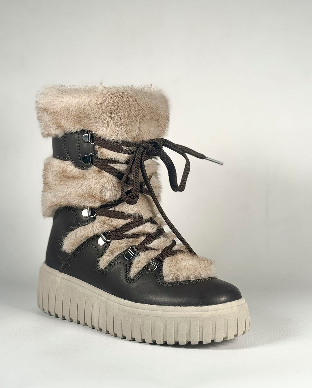 Botín de diseño y fabricación italiano, ideal para los días más fríos y húmedos. Precioso diseño, con pelo tonalidades beige, con cordones cruzados marrones al más puro estilo nórdico.