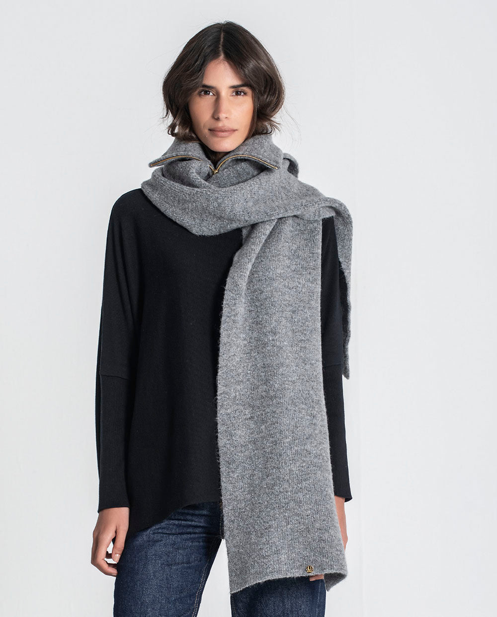 Un accesorio ¡super original y abrigado!! es un cuello vuelto con cremallera que lleva bufanda incorporada.