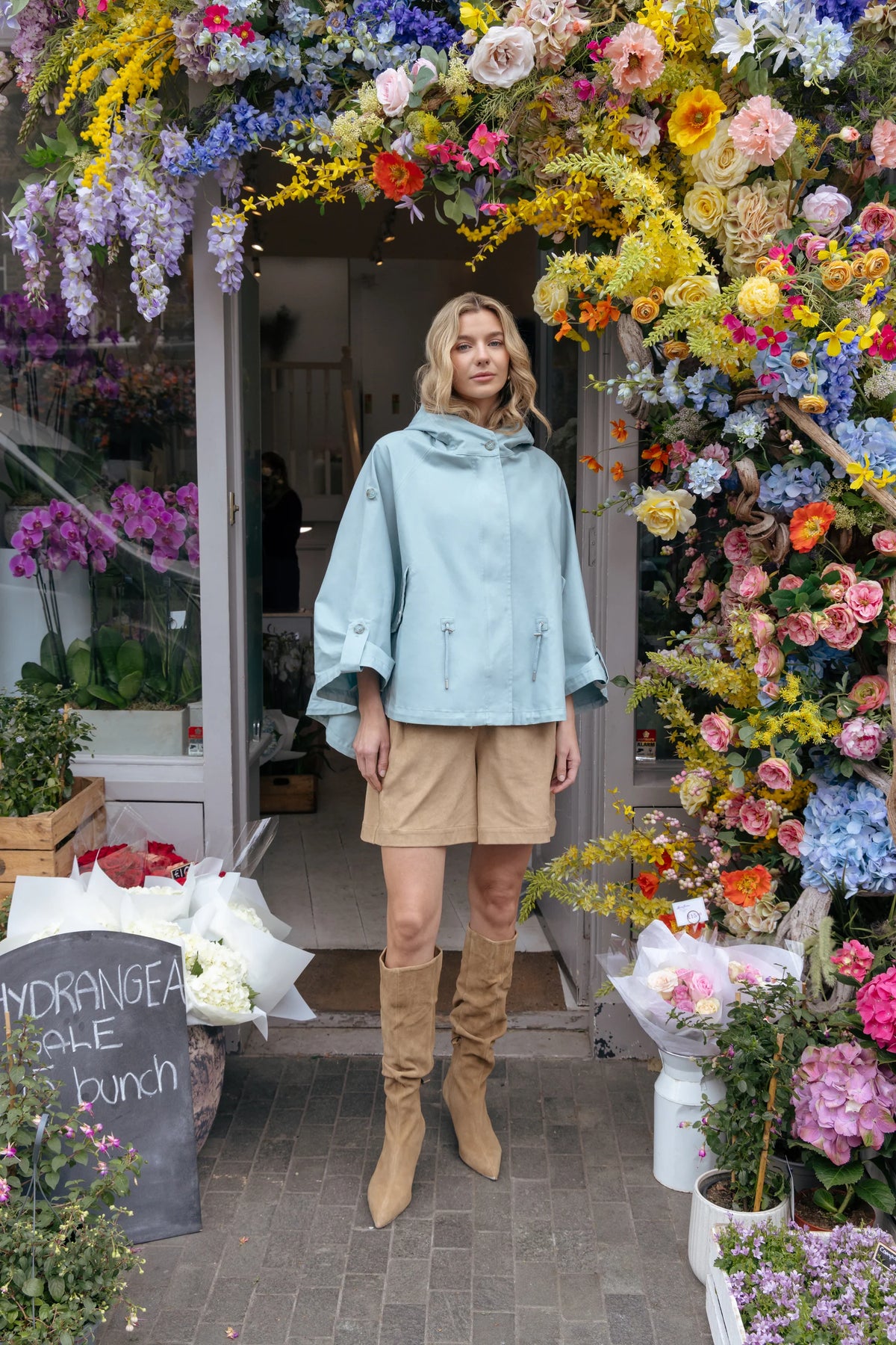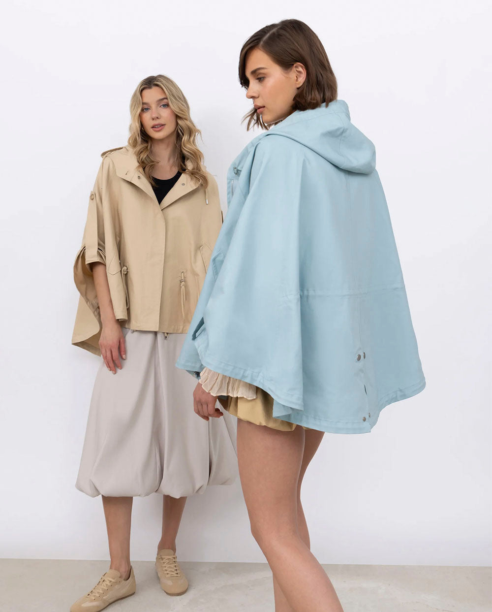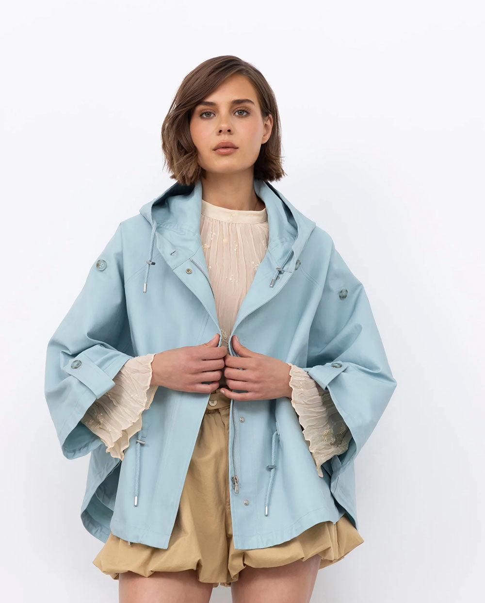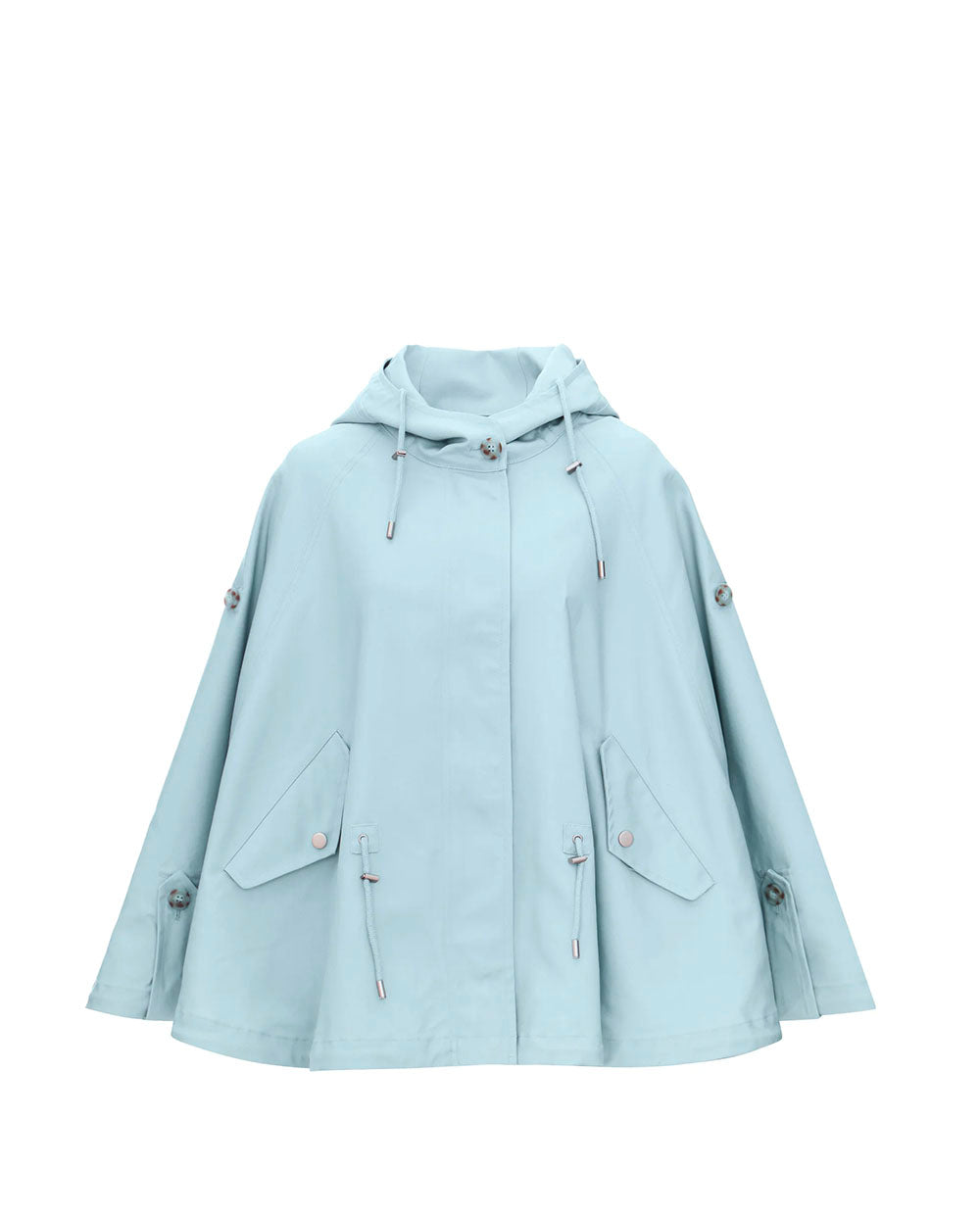 Capa de algodón resistente al agua con capucha, cordón ajustable en la cintura y cierre de cremallera, en un primaveral color azul cielo (perfecto para combinar con blancos y con tus vaqueros preferidos)