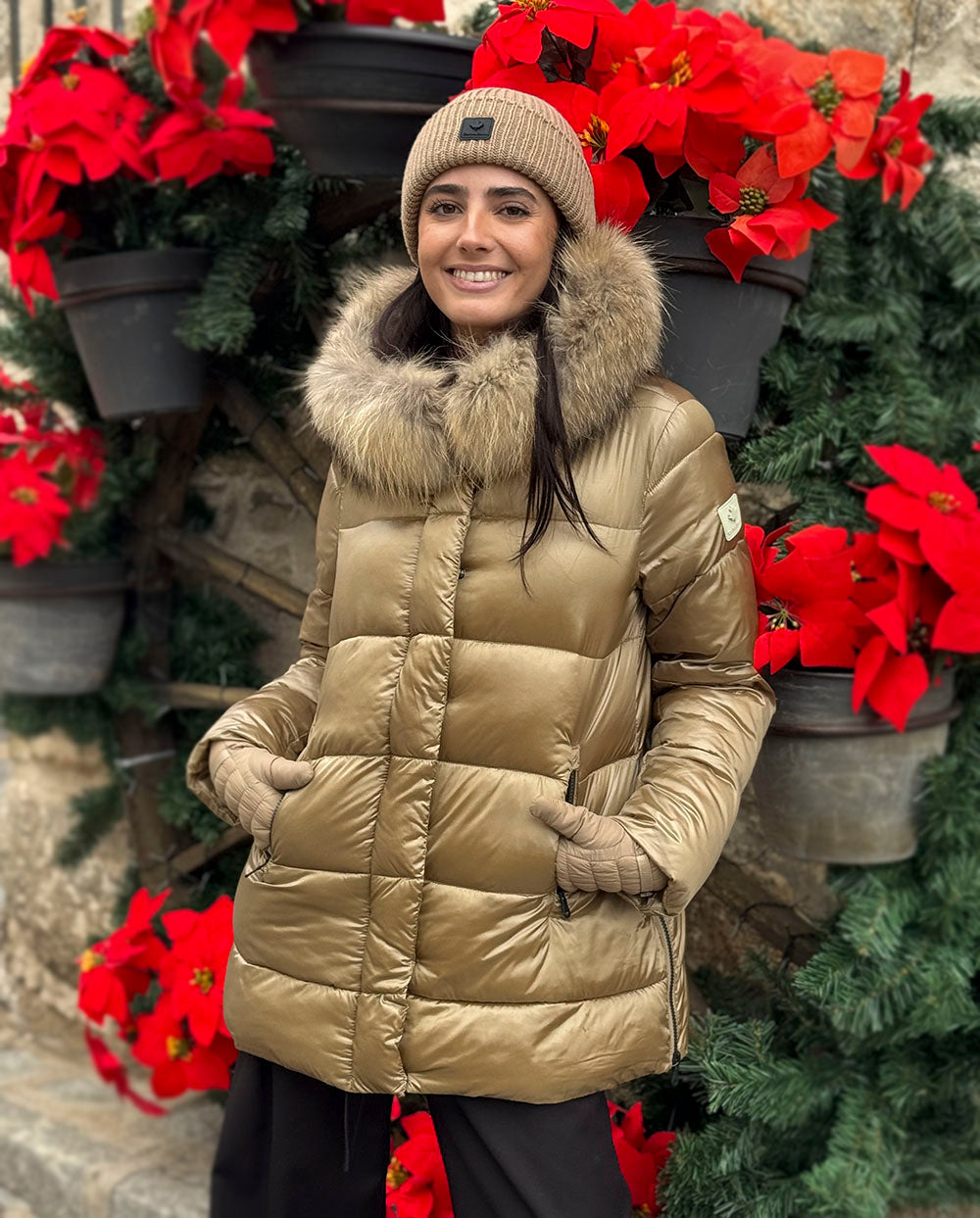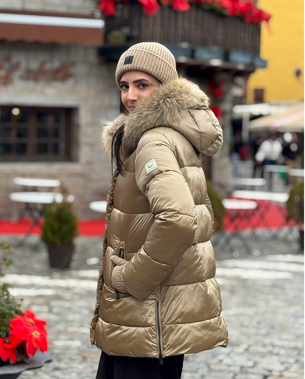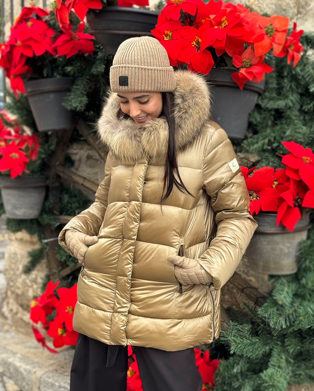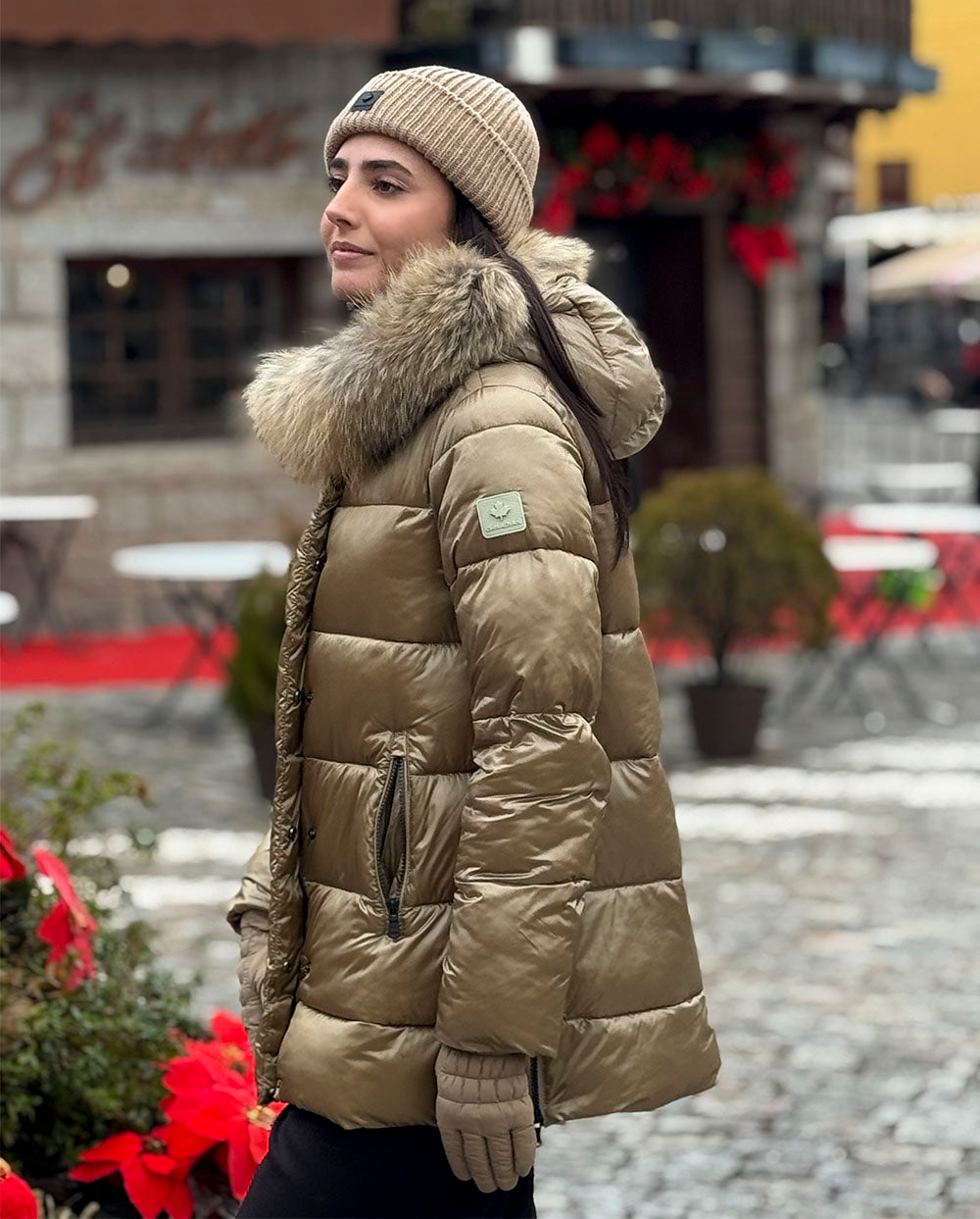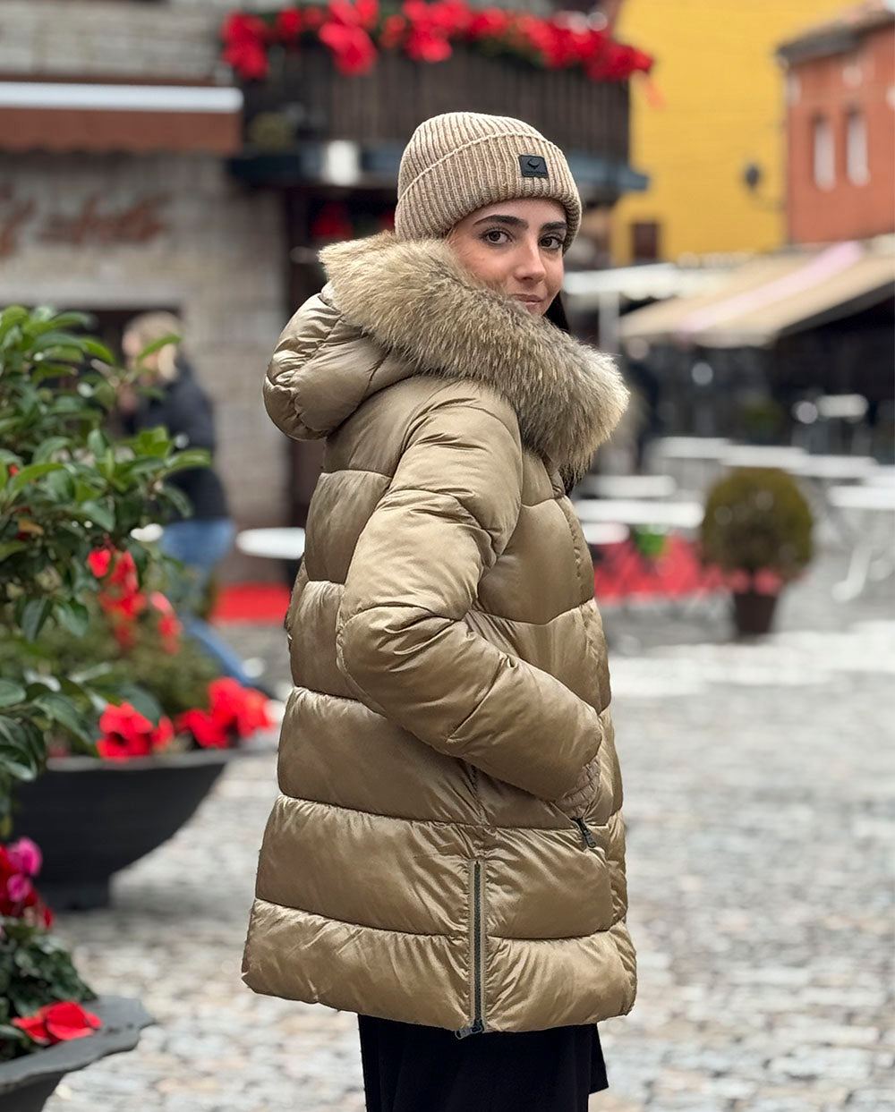 Con un diseño minimalista, resulta una prenda versátil, fácil de combinar y perfecta para el día a día en la ciudad. Lleva una capucha decorada con pelo natural que es extraible. Dos bolsillos con cremallera, cierre de cremallera con corchetes extras, y cremalleras laterales para una mayor comodidad (mejora la capacidad de movimiento al caminar o sentarse)
