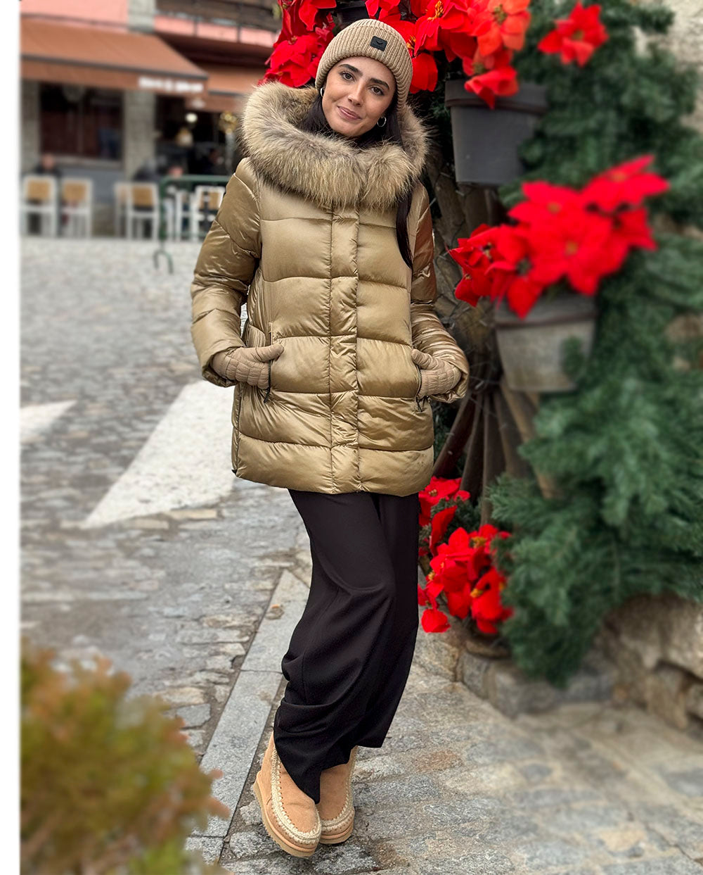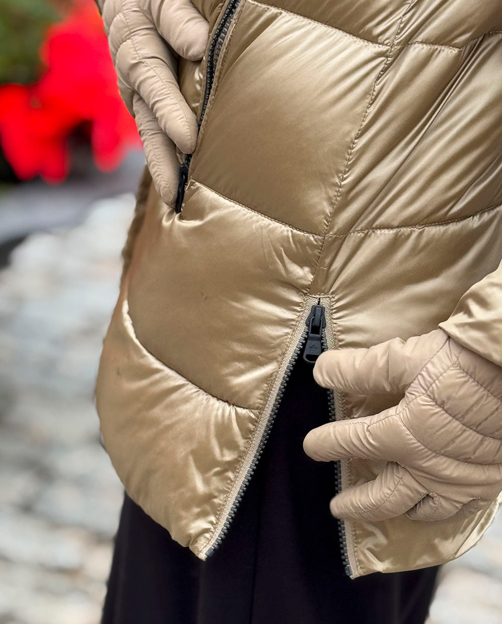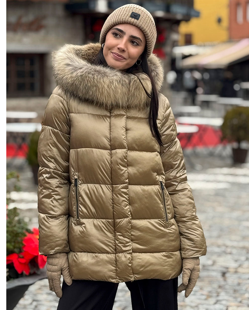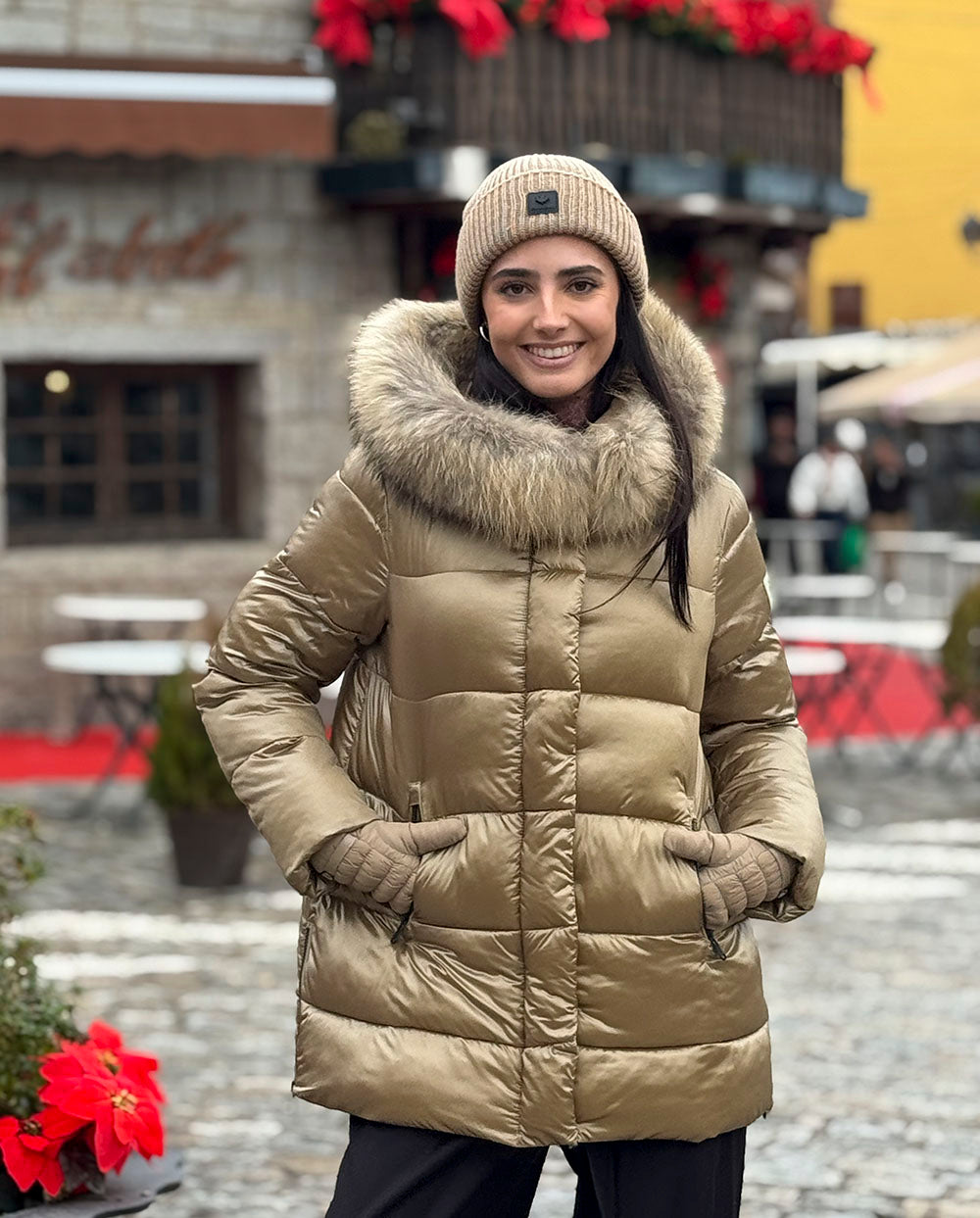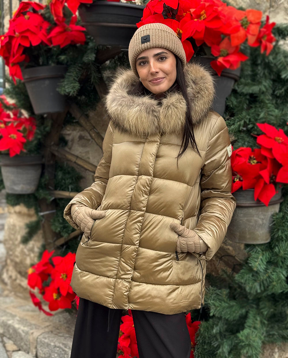 Con un diseño minimalista, resulta una prenda versátil, fácil de combinar y perfecta para el día a día en la ciudad. Lleva una capucha decorada con pelo natural que es extraible. Dos bolsillos con cremallera, cierre de cremallera con corchetes extras, y cremalleras laterales para una mayor comodidad (mejora la capacidad de movimiento al caminar o sentarse)