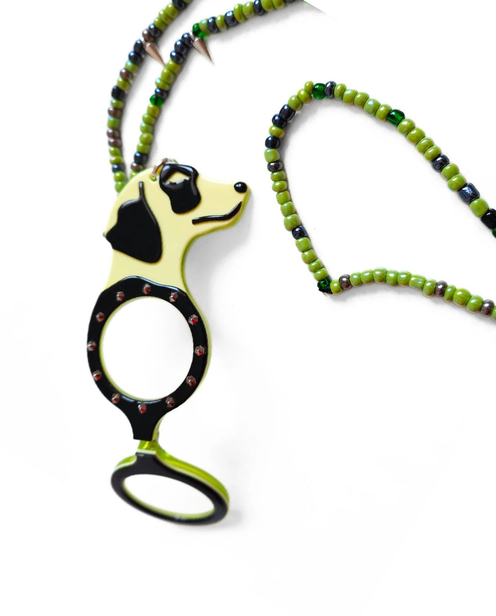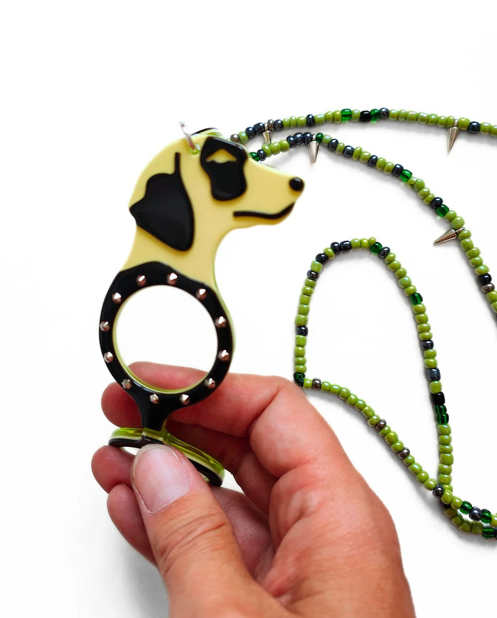 Un medallón que mezcla ternura, rebeldía y mucho estilo. Inspirado en la estética punk, este diseño incorpora detalles como el collar de tachuelas y una paleta de color enérgica y moderna: verde lima y negro. Ideal para quienes aman destacar sin perder el humor ni el amor por los animales.