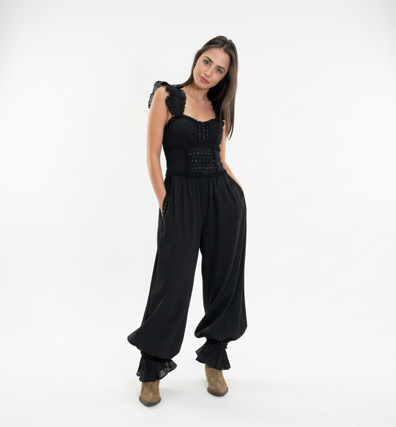 Diseño, estructura y movimiento se encuentran en este jumpsuit creado por Cris Mata, una prenda que celebra la feminidad con carácter y armonía.