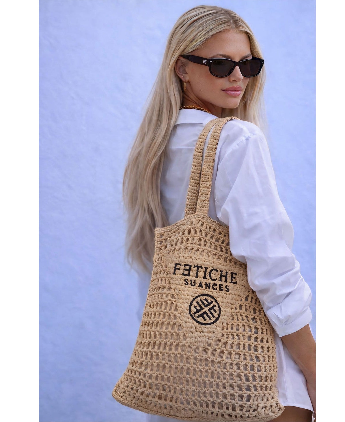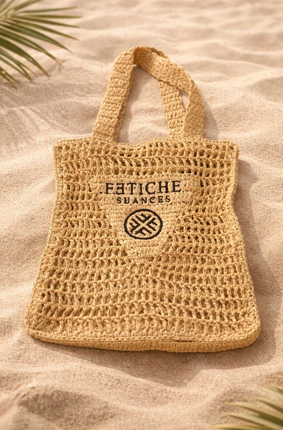 Bolso de rafia calado Sunset in paradise de la Nueva colección de Fetiche Suances Primavera-verano 2026.