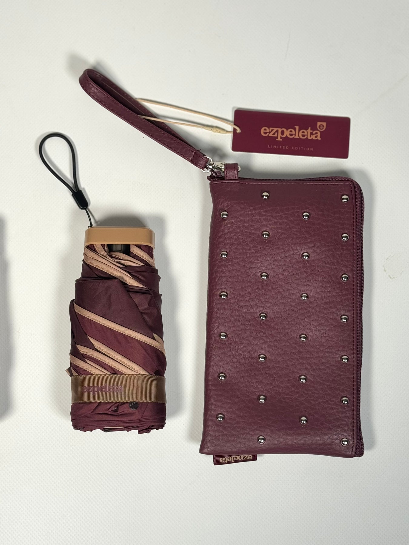 Paraguas tachuelas manual burdeos lunares Ezpeleta