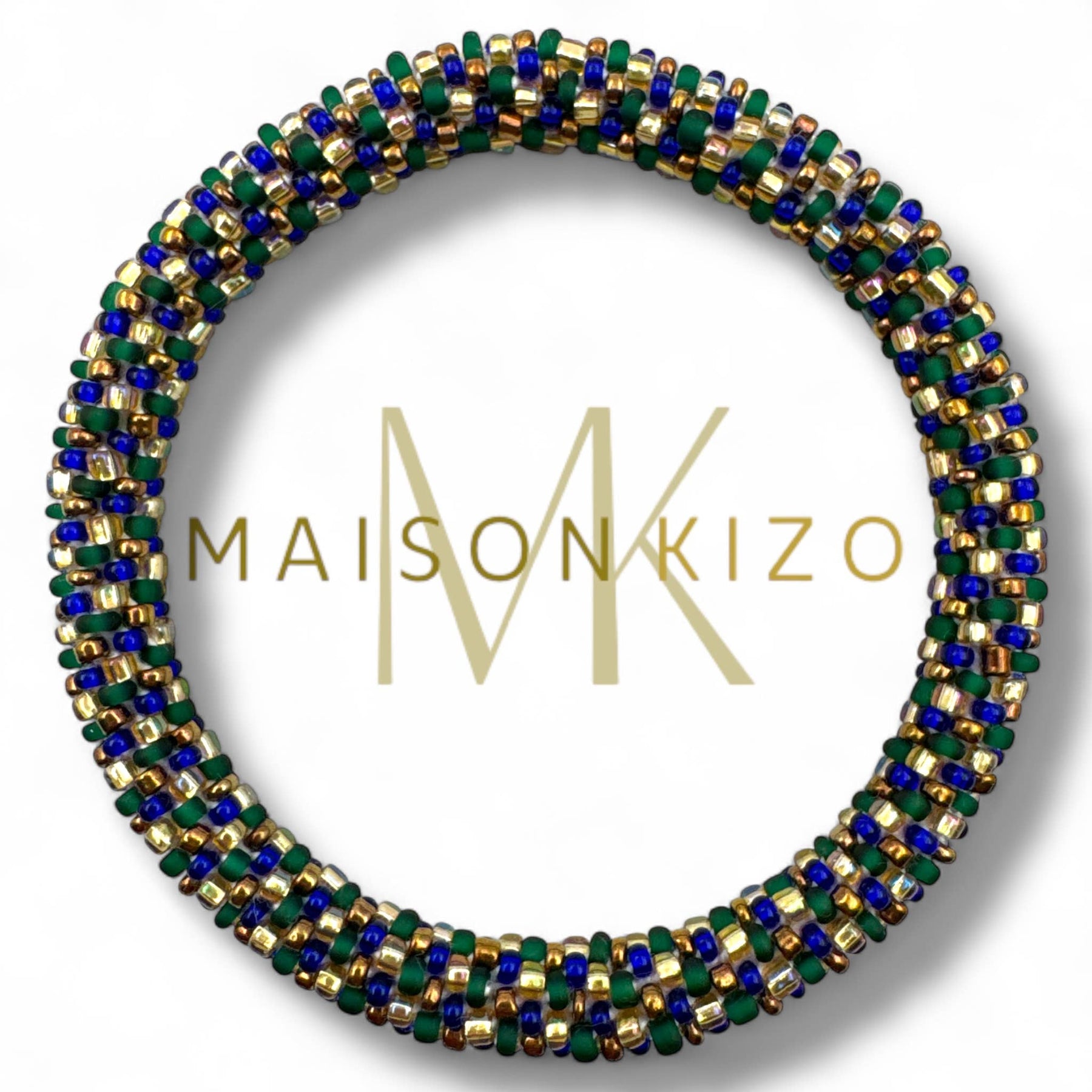 Pulsera nepalí dorado topos azul y verde B19