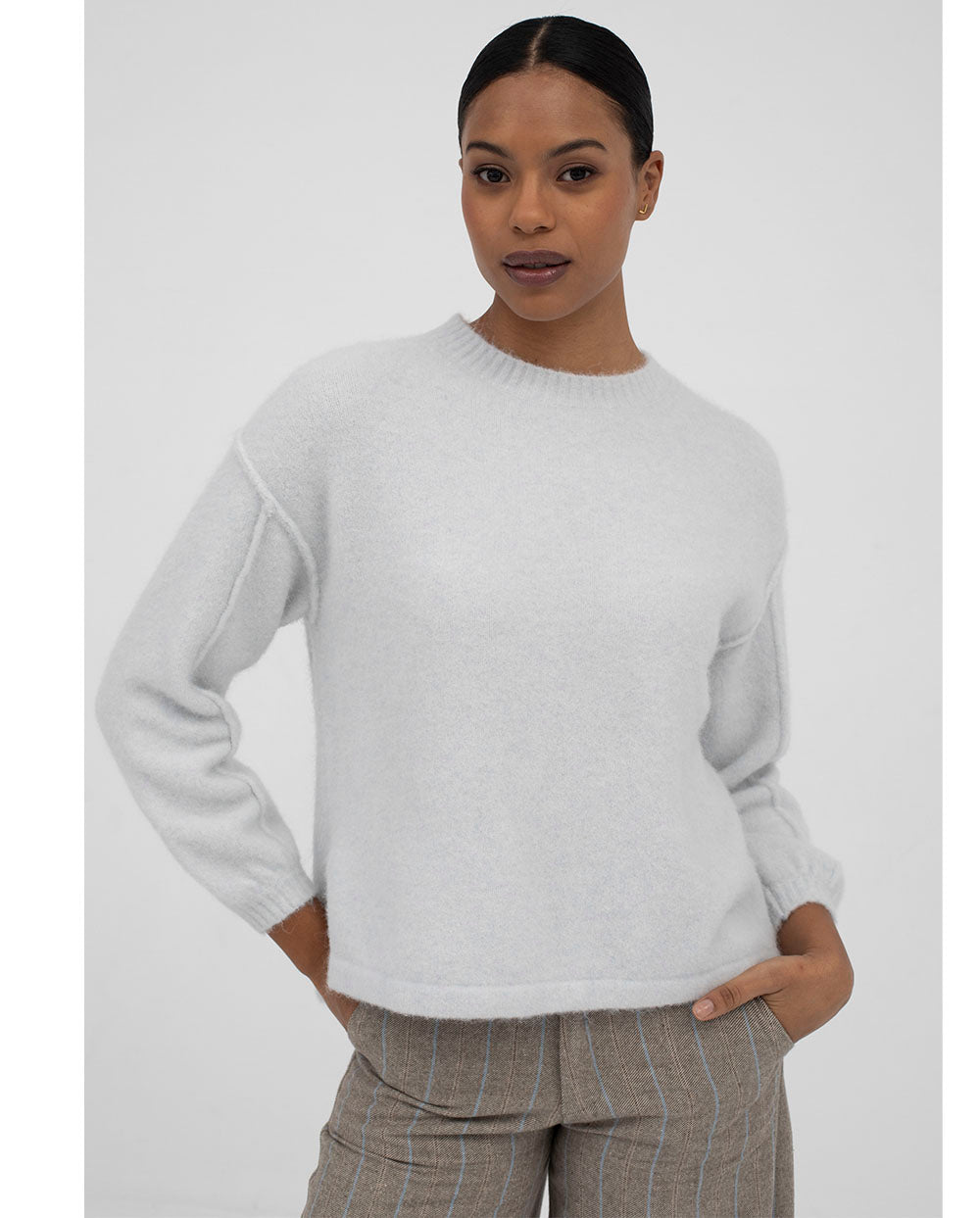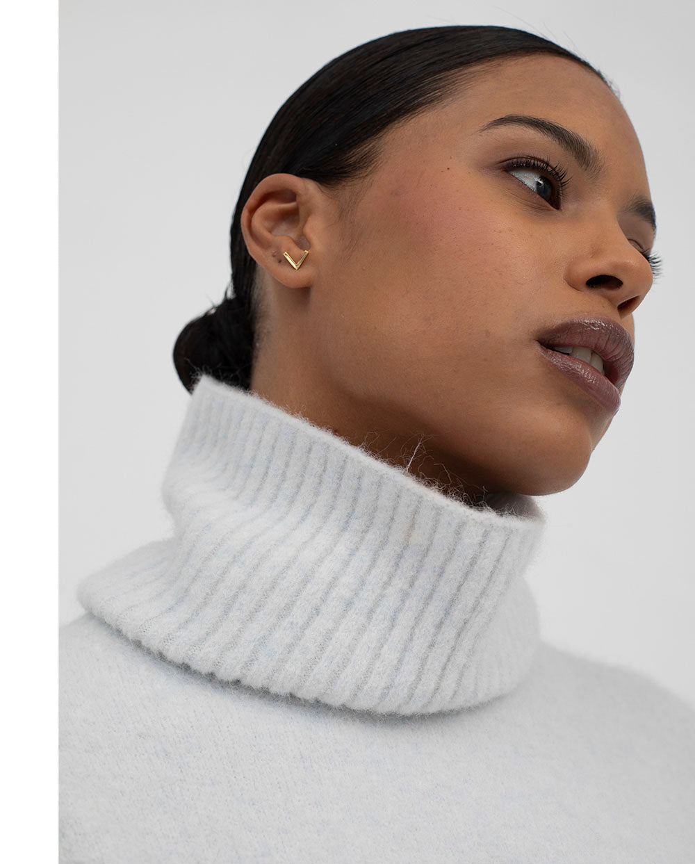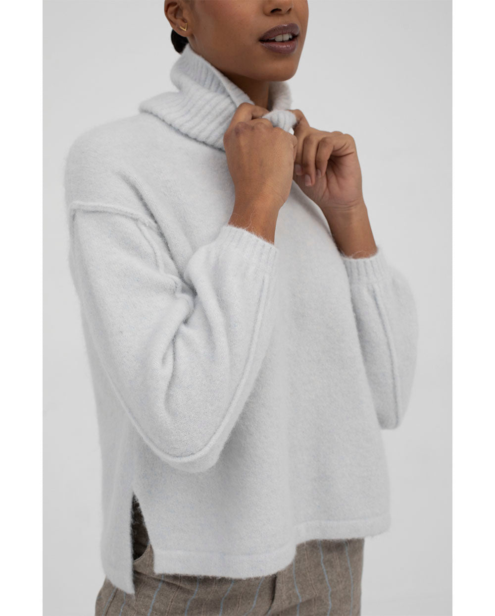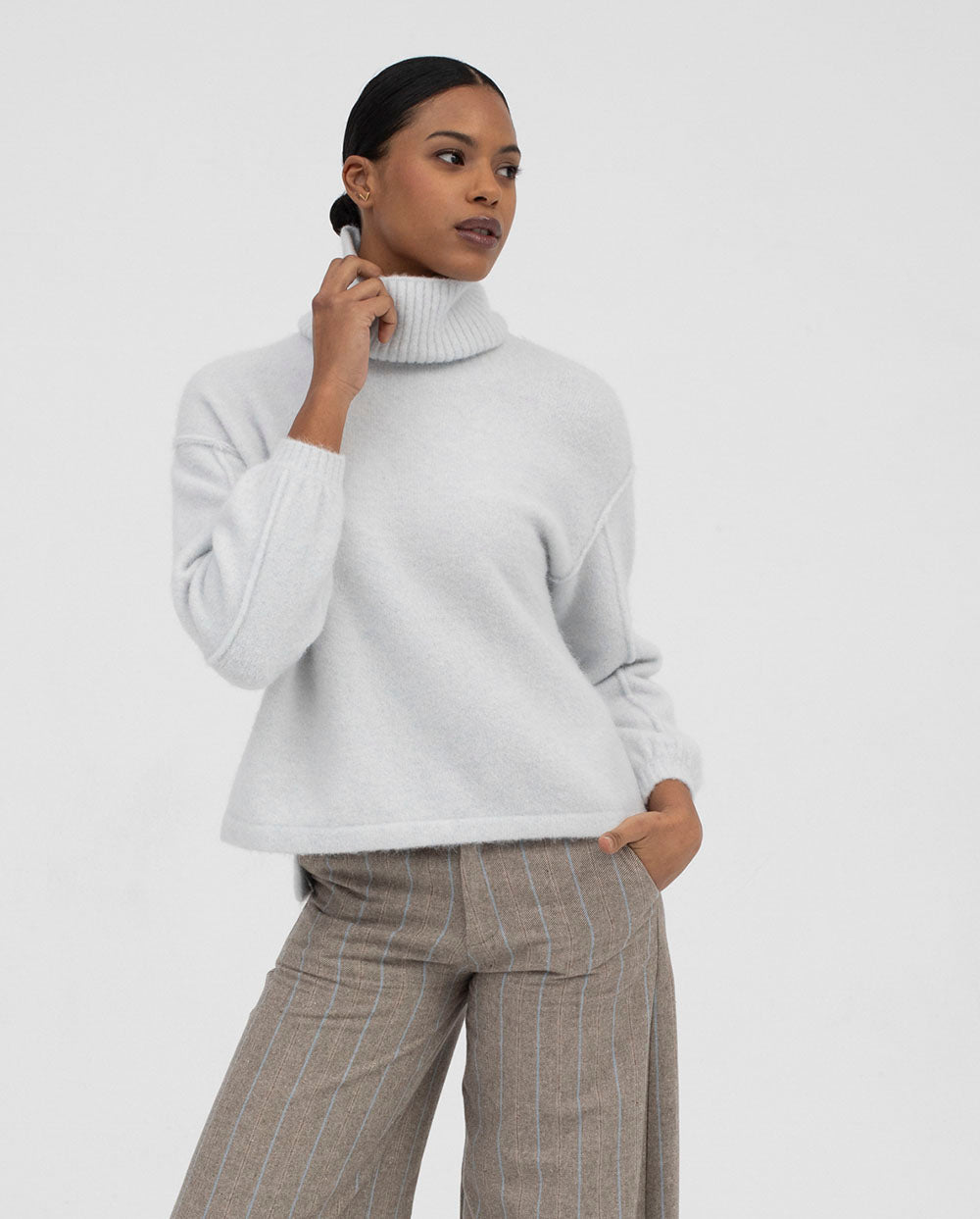 Jersey de punto Alajuela con cuello cisne opcional que puedes poner o quitar según la época del año o las necesidades diarias.