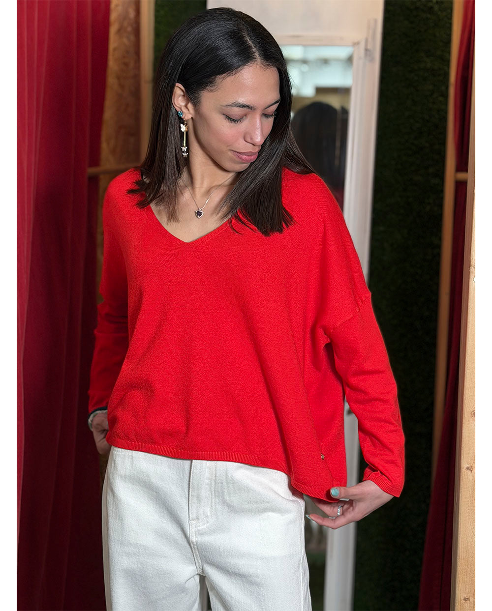Jersey escote pico en un favorecedor color rojo.