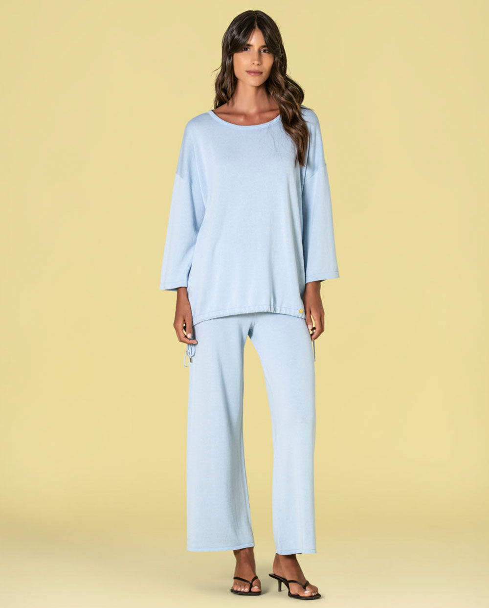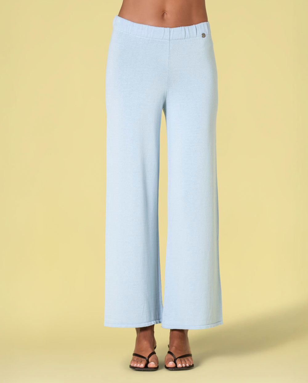 Pantalón ancho de punto suave en color azul celeste, con cinturilla elástica. De la nueva temporada primavera-verano 2026.