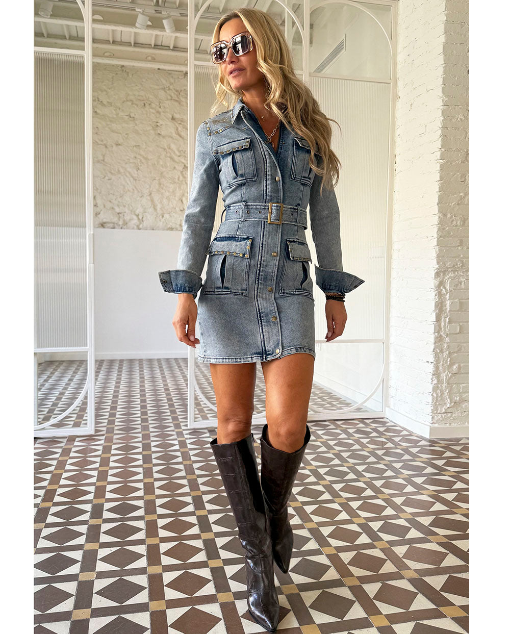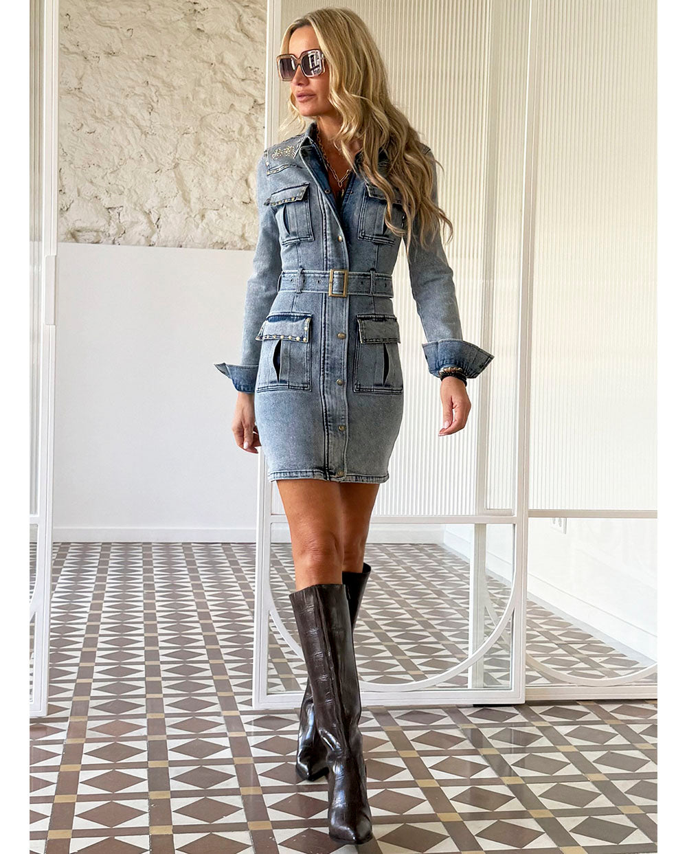 Vestido corto vaquero Selenita, de la firma Camaleónica para este Otoño Invierno 2025.