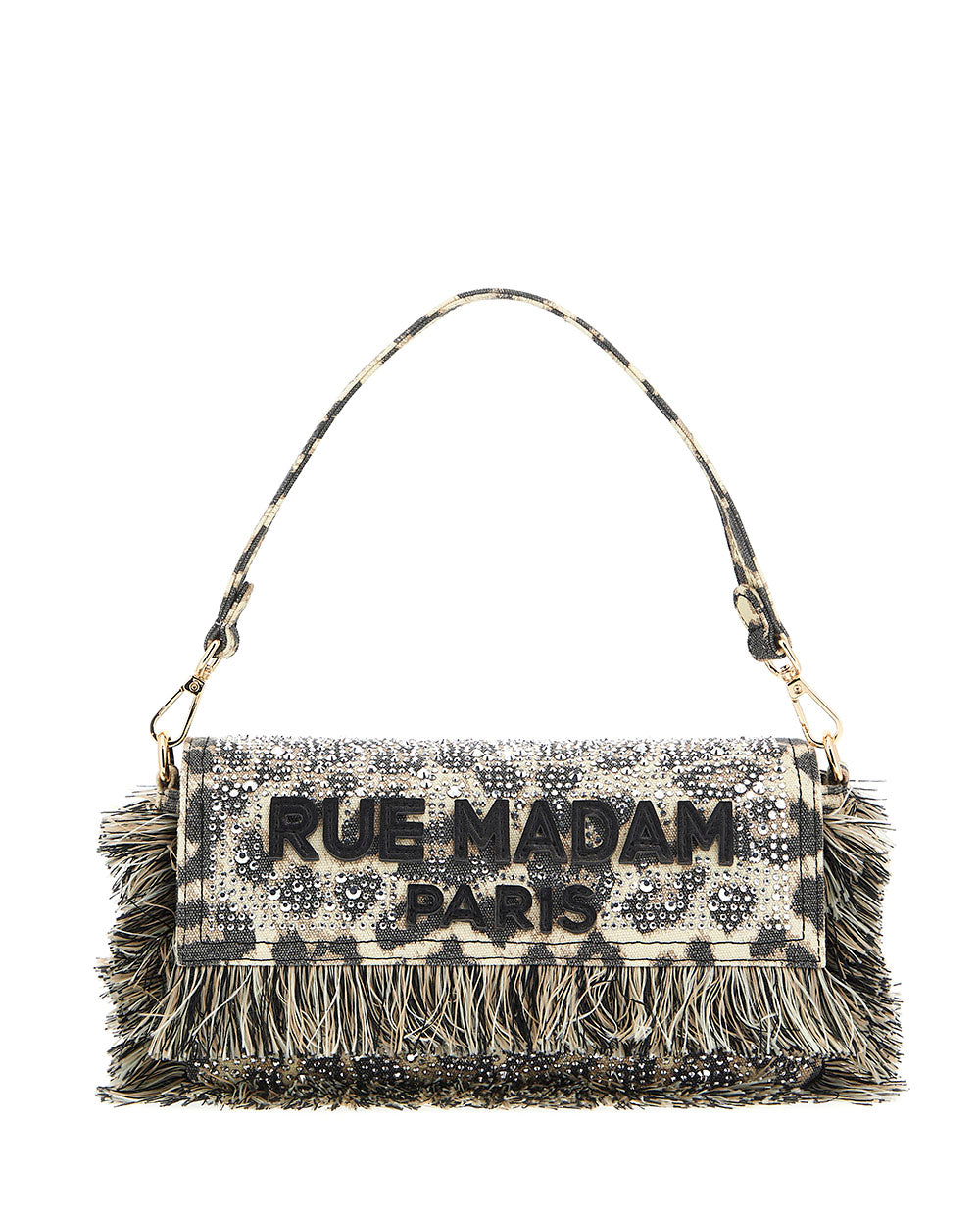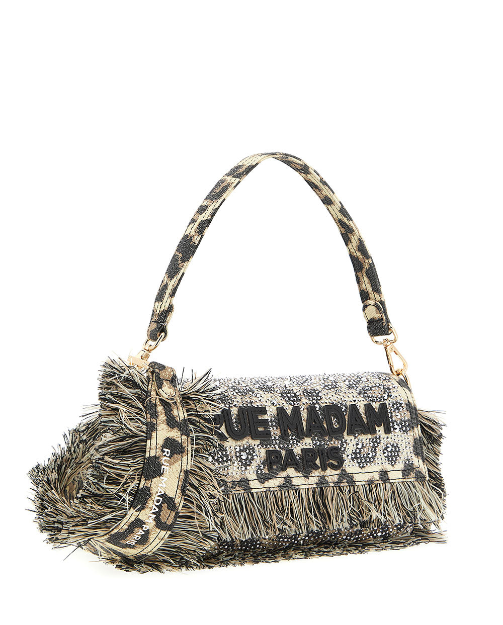 Bolso de hombro Casablanca de lona, en estampado leopardo, de la Nueva colección de Rue Madam Paris para la temporada Primavera Verano 2026.