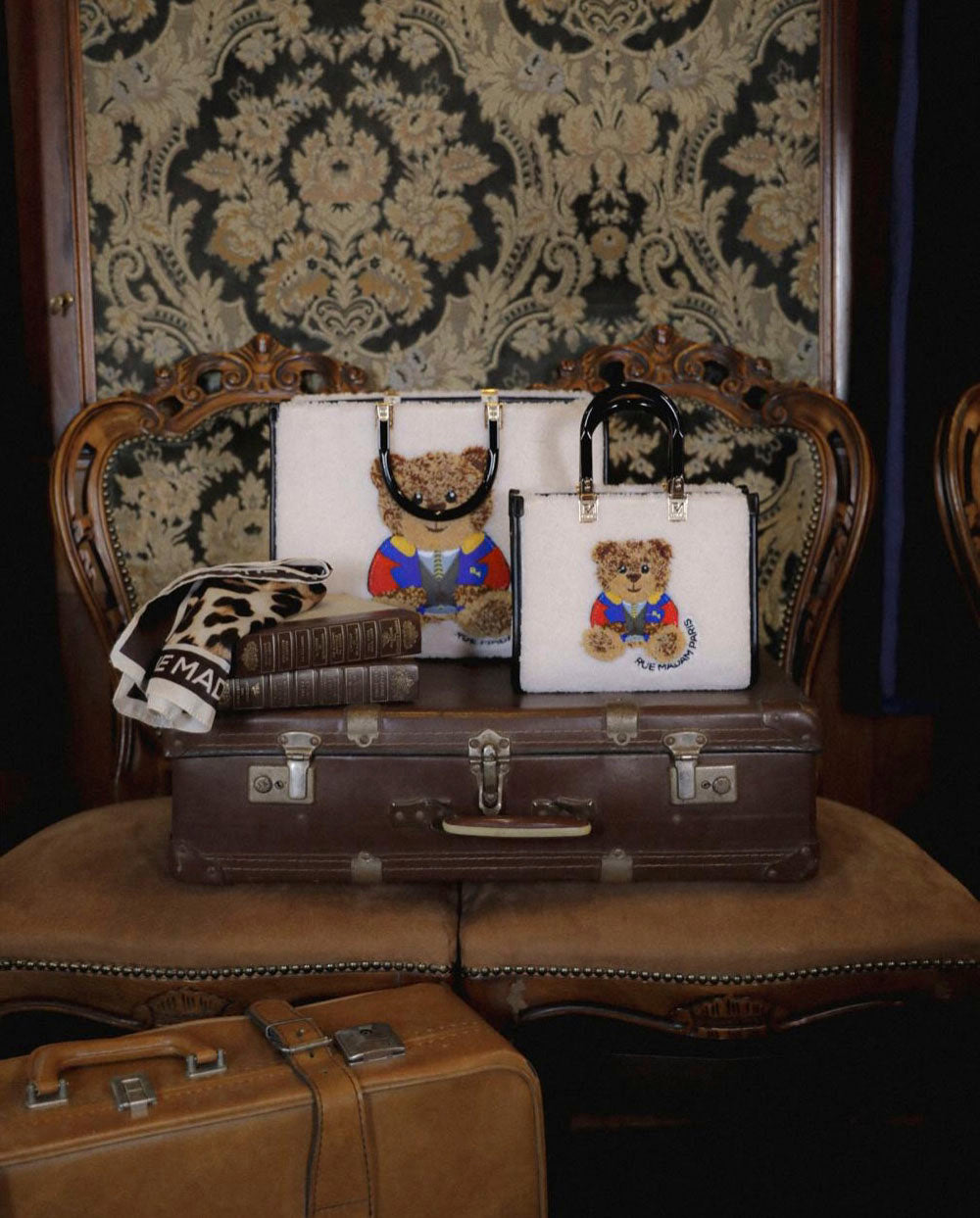 Bolso Mini Tote Marvin de borreguito sintetico con el iconico oso Marvin, trae el logo bordado y con acabados en ecopiel. Asas de resina unidas por pequeñas piezas metálicas al bolso. Incluye un doble asa bandolera.