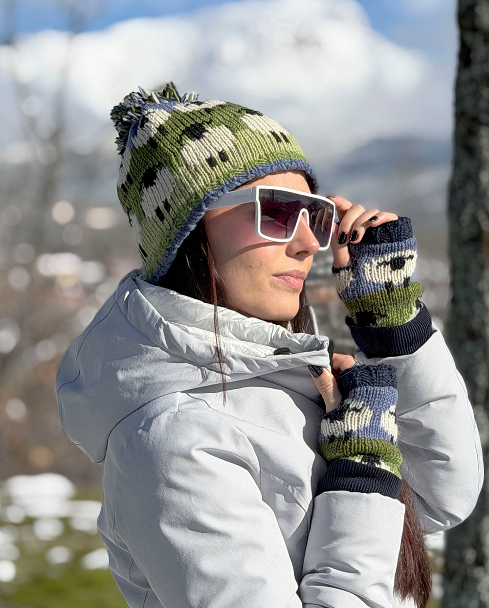 Gorro 100% lana pura, decorado con diseño de ovejas blancas. La marca británica Pachamama Knitwear crea exquisitas prendas de punto hechas a mano por artesanos locales siguiendo principios de sostenibiliad. Como marca de comercio justo, dan prioridad a las prácticas de producción ética y es miembro de la Asociación Británica de Tiendas de Comercio Justo.